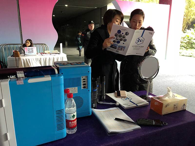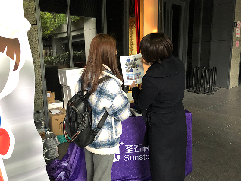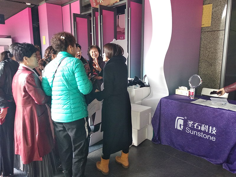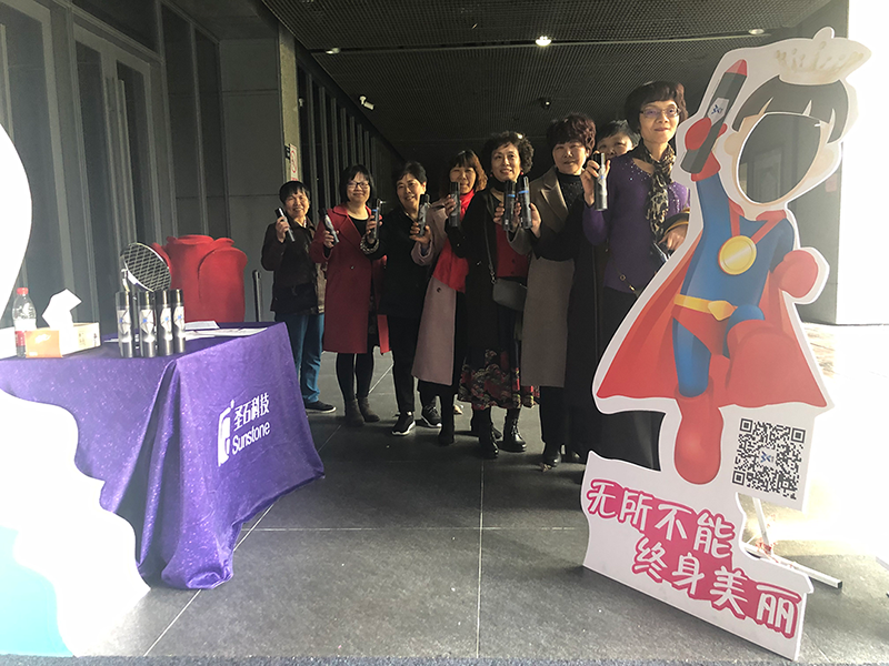 圣石科技受邀參與此次公益活動,公司企劃部、公關部負責人周曉女士、梅娜女士帶隊協力,并為前來參與活動的市民朋友每人公益派送正裝姍渡?活性膠原護膚噴霧一支。