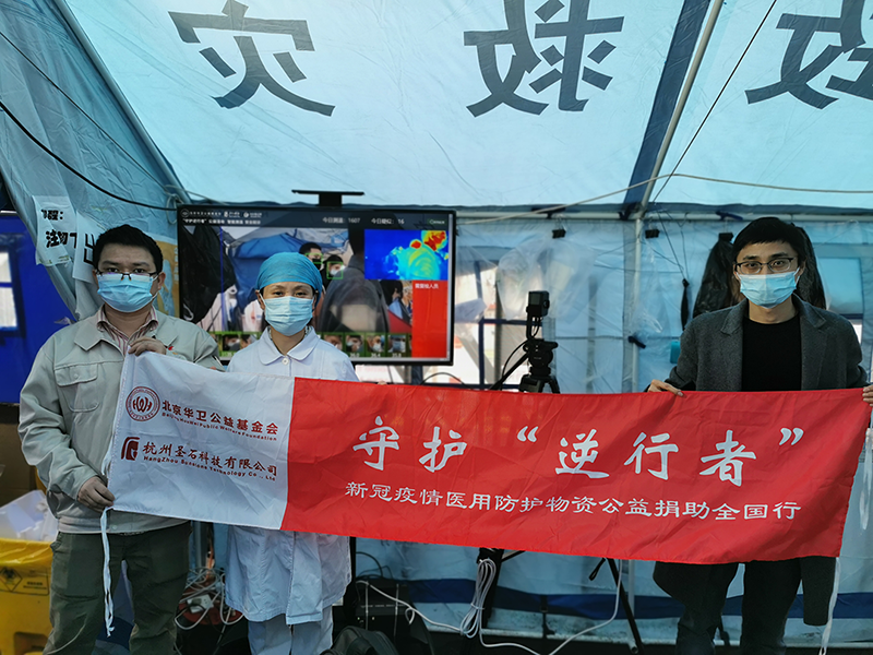 “守護逆行者”智能小程序于春節后在百度APP正式上線,平臺一方面征集發布全國重點醫院各類應急物資需求,另一方面無償發布相關產品、產能信息,助力應急物資保障。“守護逆行者”上線僅幾天,全國百余家承擔重點防疫任務的醫院上傳了大量的需求信息,圣石科技積極響應,第一時間向北京華衛公益基金會捐款500萬元,并組織安排圣石科技各分公司員工作為公益志愿者遠赴全國,向武漢協和醫院、武漢中南醫院、荊州市第一人民醫院等全國百余家大型醫療機構用于抗擊新冠肺炎醫護人員緊缺防護用品以及先進AI多功能智能測溫系統的采購捐助。積極履行社會責任既是圣石義不容辭的使命,也是企業長期以來堅持的信念,面對疫情,圣石科技全體員工愿與社會各界共克時艱,守護生命。