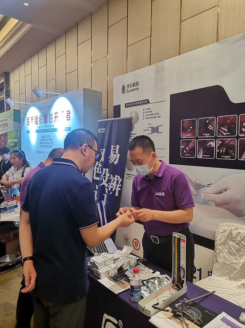 會議期間,圣石展位依舊備受關注,企業核心產品速豐?可吸收止血結扎夾一如既往備獲好評。基于創新理念的創新醫療技術產品“可崩解腸道吻合器”一經展示,就獲得了廣大與會專家的高度認可,希望企業能提供臨床試用機會。