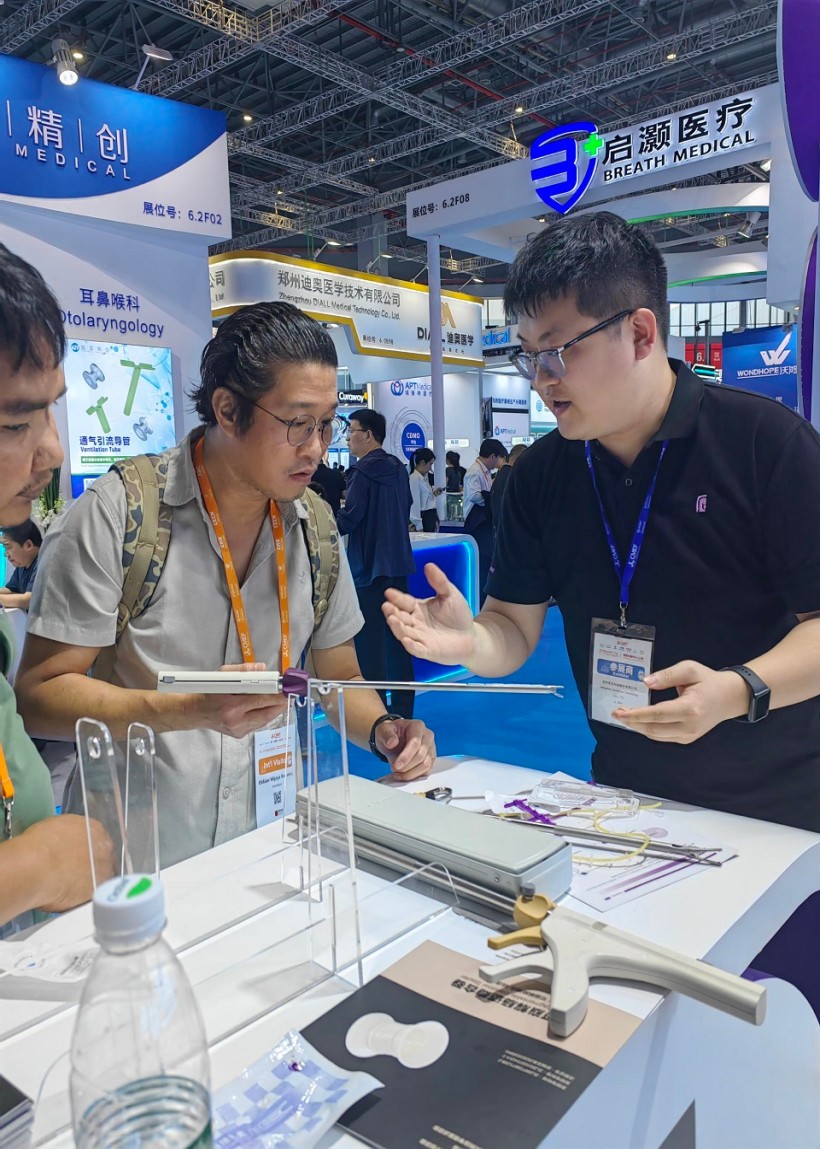 2025年4月8日,第91屆中國國際醫療器械(春季)博覽會(簡稱“CMEF”)在國家會展中心(上海)啟幕,圣石科技在創新醫療器械研制的銳意進取,成為展會的看點之一。作為管腔組織閉合及吻合方案的專業提供者,圣石展品吸引了大量國內外客戶的專程體驗,展臺前人流不息,洽談氣氛熱烈。