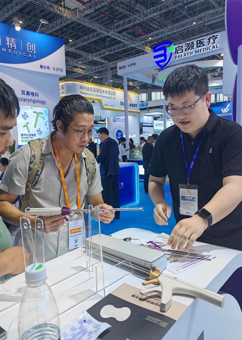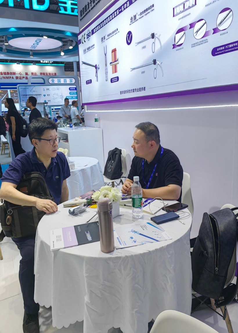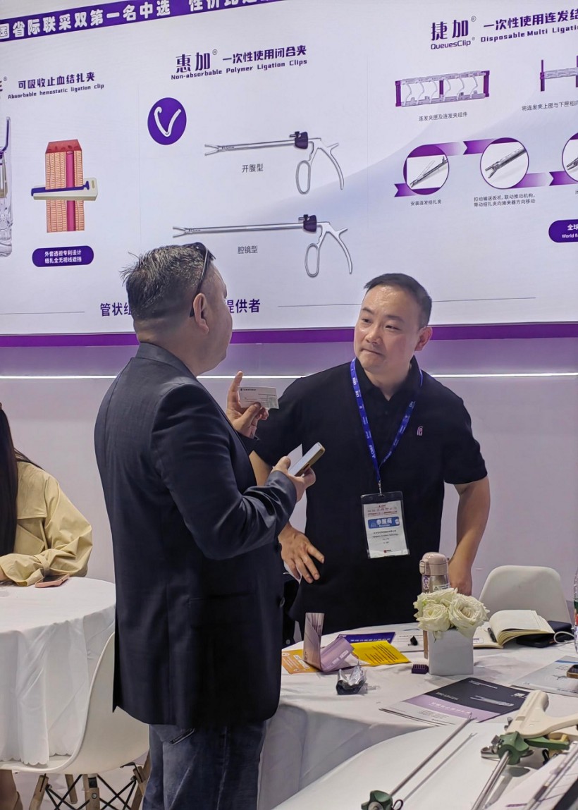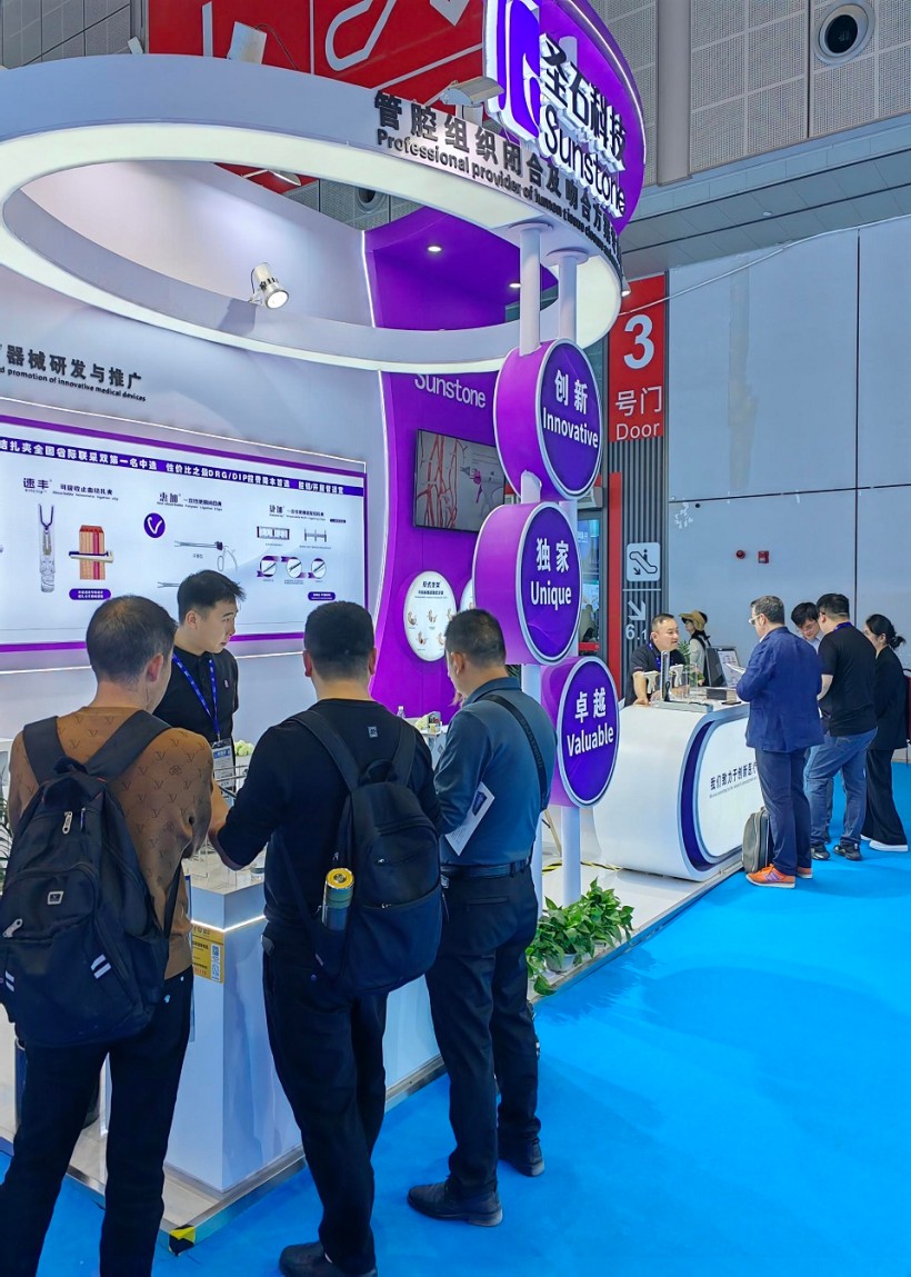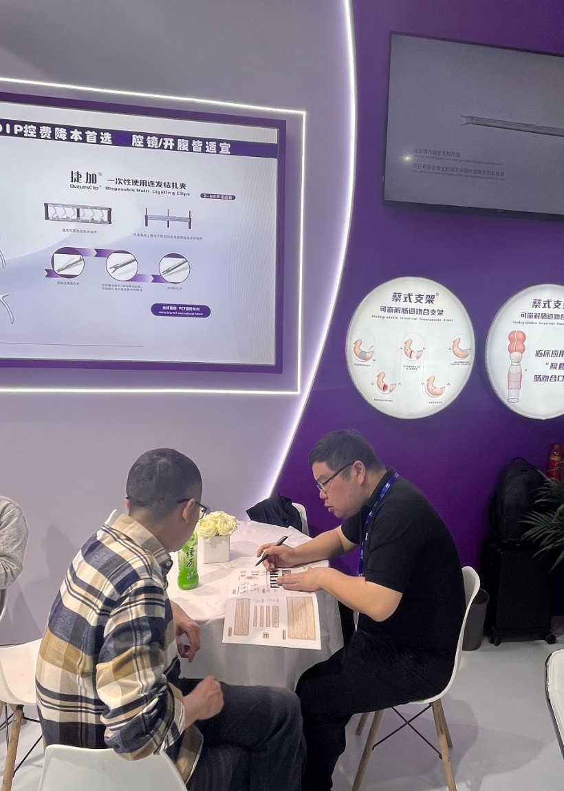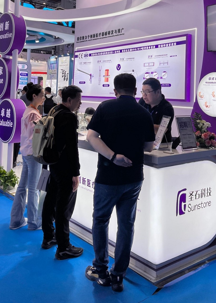 圣石同期展示的獨創產品又一次聚焦了眾人目光。全球首創捷加?一次性使用連發結扎夾及配套捷施?連發施夾鉗,其獨特的可重復使用連發鉗專利設計,以及“2-6枚的連發夾靈活選裝”專利技術不僅降低耗材使用成本,更通過流暢的操控性適配腔鏡復雜場景需求。圣石與浙大邵逸夫醫院聯合研制,可應用于腸道吻合與轉流的創新產品蔡式支架?“可崩解腸道吻合器”使此項全球創新術式配套產品具有吻合時間短、無永久殘留異物、不破壞吻合口粘膜下血管,并能預防吻合口漏、可避免人工肛門及二次手術、治療周期縮短、減少患者生理心理創傷等多項臨床優勢。