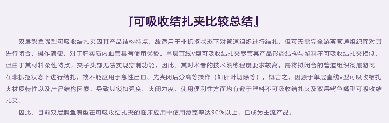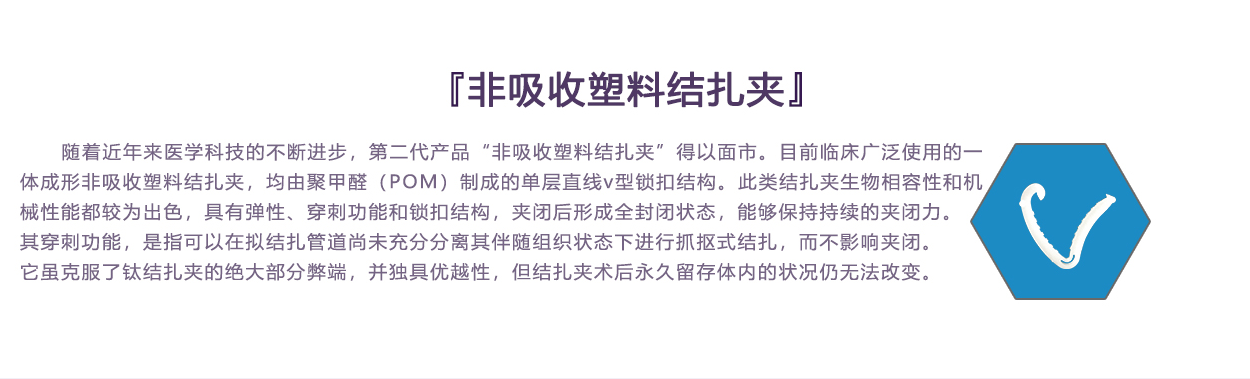內(nèi)層夾用醫(yī)用染色劑,與進(jìn)口單層V型可吸收夾顏色一致,提高其可視性。